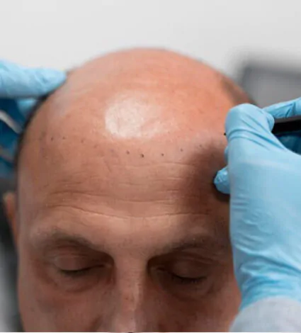 يُجرى للمريض فحص شامل لفروة رأسه لتقييم الحالة وتحديد المناطق التي تحتاج إلى زراعة الشعر.
